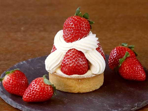 甘みと酸味のバランスのとれた国産苺を使用したタルトです。サクサクしたタルトの食感と、ジューシーな苺とのハーモニーをお楽しみください。